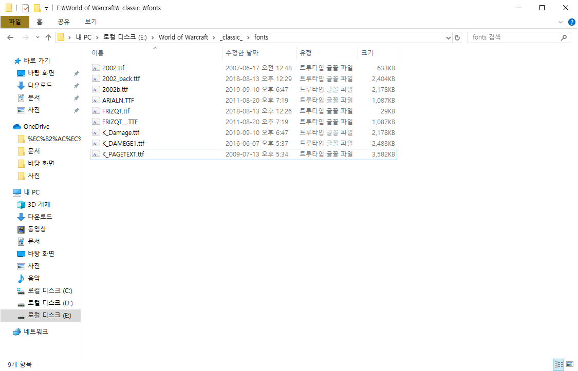 일단 와우클래식이 설치된 폴더로 가셔서 FONTS 폴더를 만드신 다음