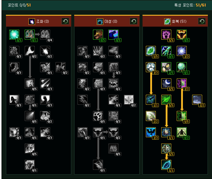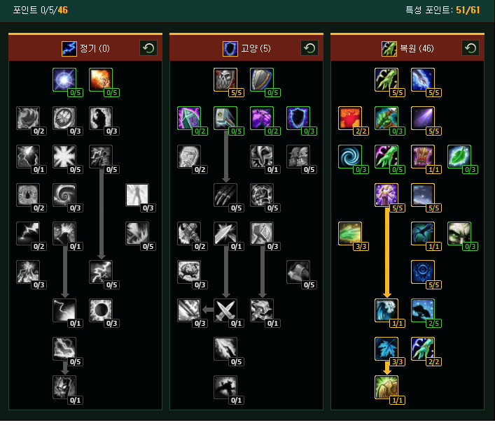 사제의 경우 회기나 드루이드의 급속성장 등 60레벨 이후에 사용할수있는 스킬들을 위한 특성들도 있기 때문인데요