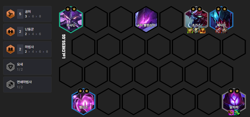 저 친구들 중 3명만 써서 공허 3시너지를 이용한 빨판상어를 쓰고 나머지 두 자리는 내 조합에 주축이 되는 친구들을 씁니다.