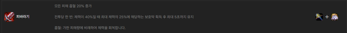 가령 예를 들면 야스오나 나서스, 렉사이, 제드 등 AD 딜러들이 많이 쓰는 국밥조합 피바 거결의 경우가 있는데
