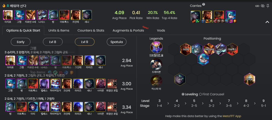 일단 7렙은 찍고 3성작을 해야하기 때문에 돈모아서 상황을 보시면 됩니다.