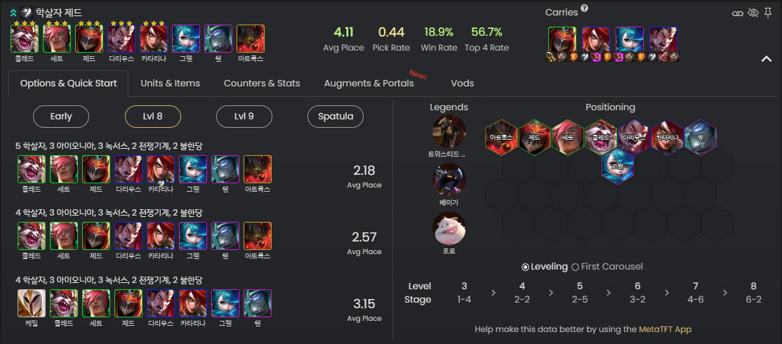 만약 내가 2번쨰 증강까지 해서 학살자 문양을 먹었다면 그냥 6렙에서 계속 바닥을 긁어서 카타까지 3성을 만들면 됩니다.